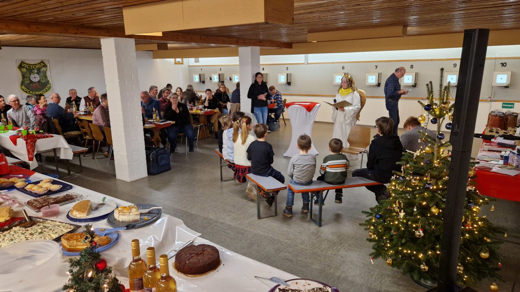 Für heitere und zugleich besinnliche Momente sorgte Johannes Nägel, der die Geschichte „Die unglaubliche Weihnachtsgeschichte des Schützenwichtels Vicy“ vorlas. Die Geschichte, die von 2. Vorstand Thomas Steinmetz verfasst wurde, zauberte so manches Schmunzeln in die Gesichter der Zuhörer und vermittelte eindrucksvoll den wahren Sinn von Weihnachten im Vereinsleben.