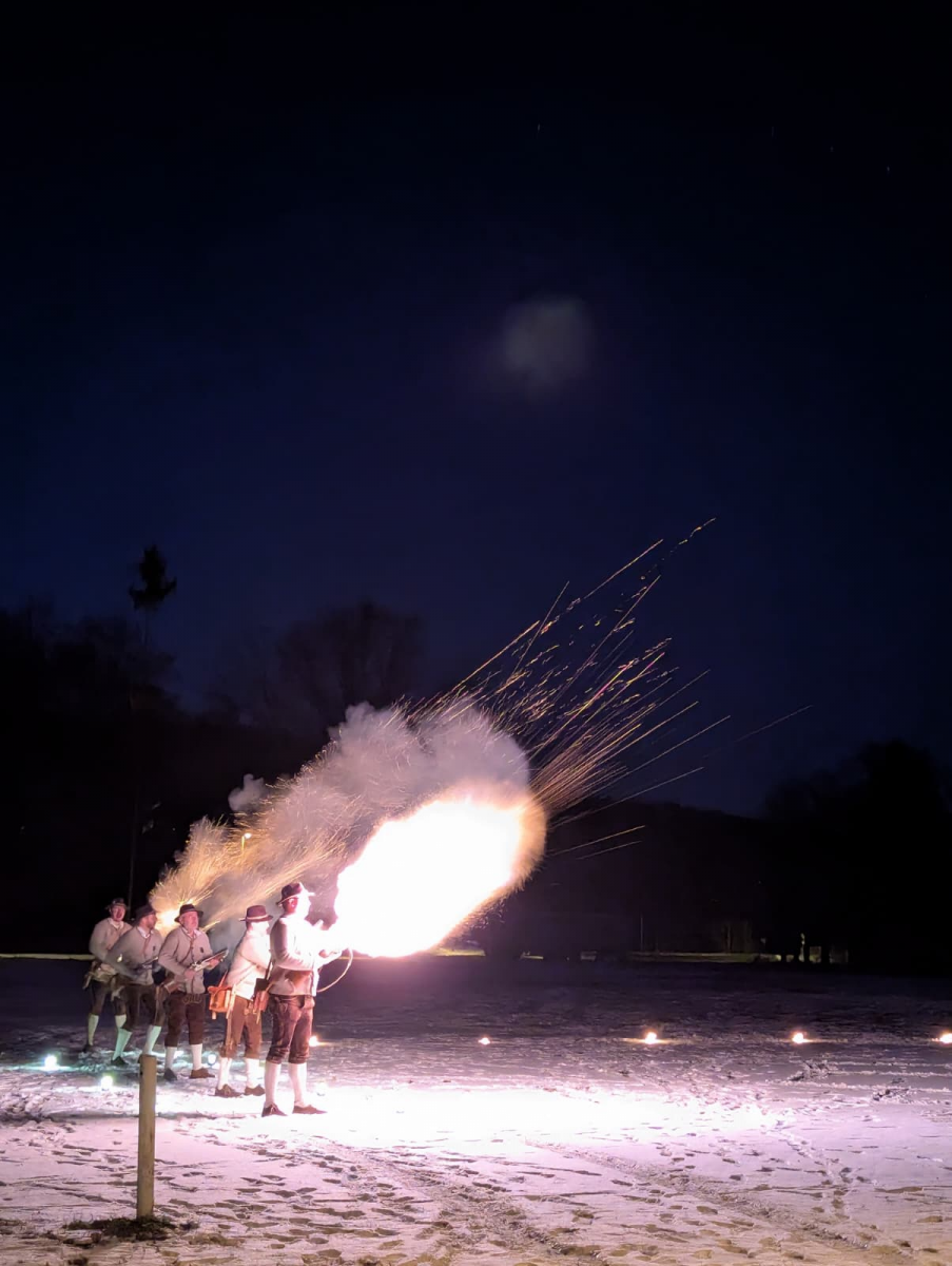 Bereits vor dem eigentlichen Stärke Antrinken sorgte die vereinseigene Böllergruppe für einen stimmungsvollen Auftakt. Mit fünf eindrucksvollen Böllersalven vertrieben die Böllerschützen symbolisch die bösen Geister der Raunächte und machten den Weg frei für ein gutes und erfolgreiches neues Jahr.
